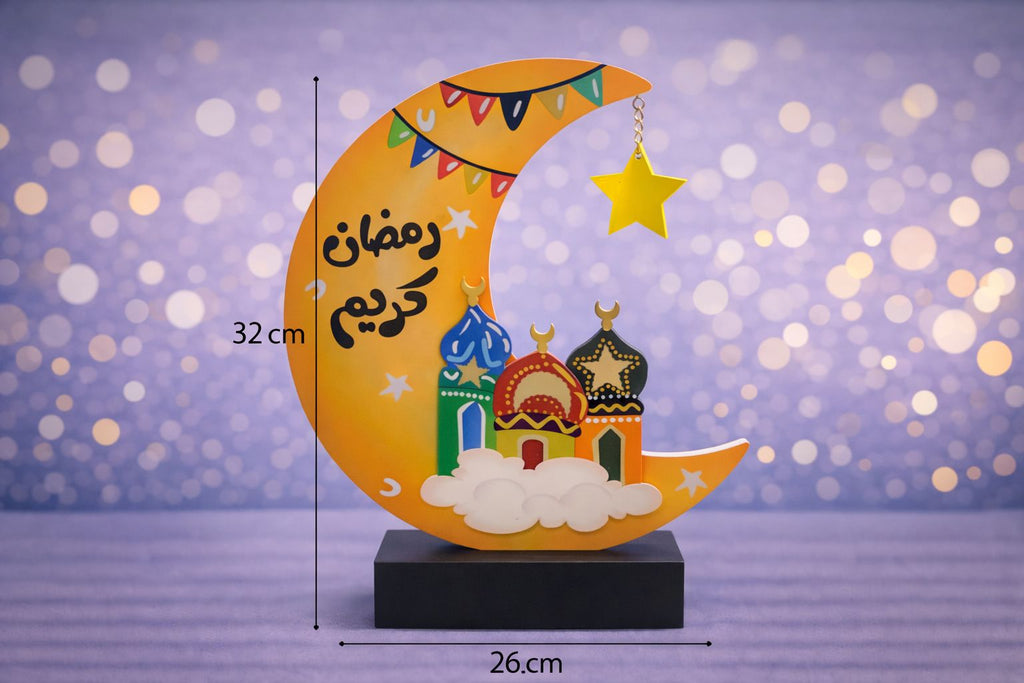 Træmåne på fod med skrift